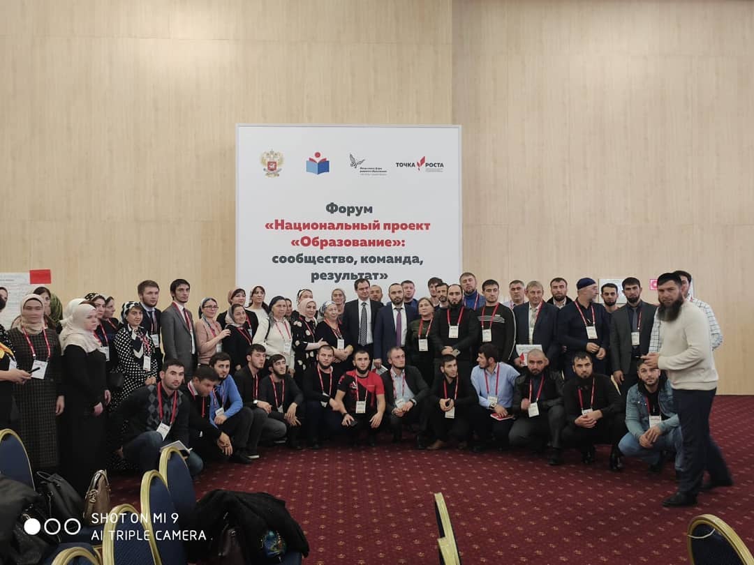 Чеченскую республику представляет делегация из 83 руководителей Центров "Точка Роста", во главе с региональным координатором проекта и заместителем министра образования и науки ЧЕЧЕНСКОЙ РЕСПУБЛИКИ Усмановым А.Р.. Всего в работе форума принимают участие порядка 2,5 тыс. человек из 50 регионов Российской Федерации.С приветственным словом выступили: Министр просвещения Российской Федерации Васильева Ольга Юрьевна, заместитель Министра просвещения Российской Федерации Ракова Марина Николаевна и ведущие эксперты ФГАУ «Фонд новых форм развития образования». В рамках программы форума участники обсудили вопросы деятельности федеральной сети Центров, стали участниками нетворкинга, деловых игр, мастер-классов по вопросам реализации основных и дополнительных общеобразовательных программ в центрах «Точка роста» регионов РФ.Форум завершил свою работу 7 ноября 2019 года церемонией награждения.