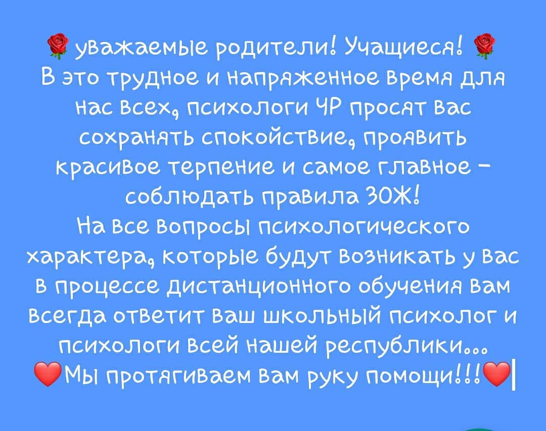 ✅✅✅Уважаемые родители, доводим до вашего сведения, что в режиме дистанционного обучения, если вы или ваши дети испытываете трудности психологического характера, если вам нужны рекомендации, или же нуждаетесь в индивидуальной консультации, вы можете обращаться к вашему школьному психологу!!! Контактный номер: 89667244963 Хава