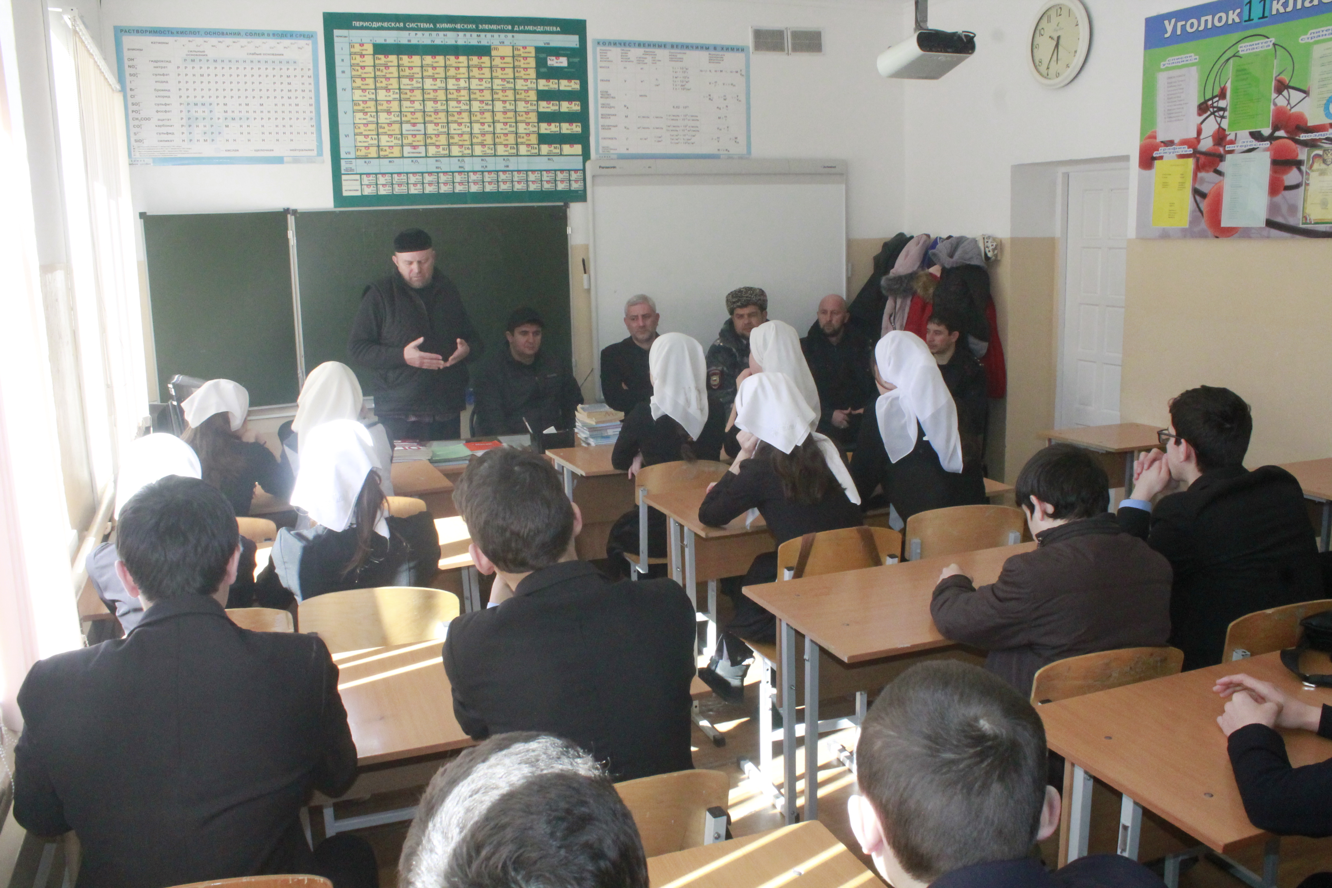 27.02.201727.02.2017г.в МБОУ «СОШ с. Итум-Кали им. Исаева Х.А.» прошла встреча представителей: администрации, духовенства, полиции района, а также представителя погрануправления республики с обучающимися 9-11 класса .