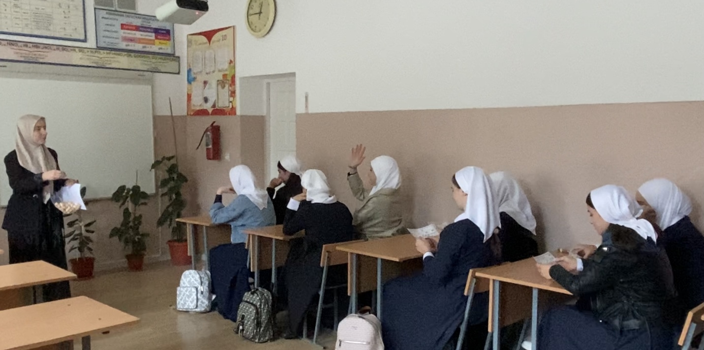 Советник директора по воспитанию Висакаева М.М. провела интеллектуальную игру для обучающихся 9 класса. Несмотря на усталость дети с энтузиазмом подошли к игре и отвечали на вопросы.