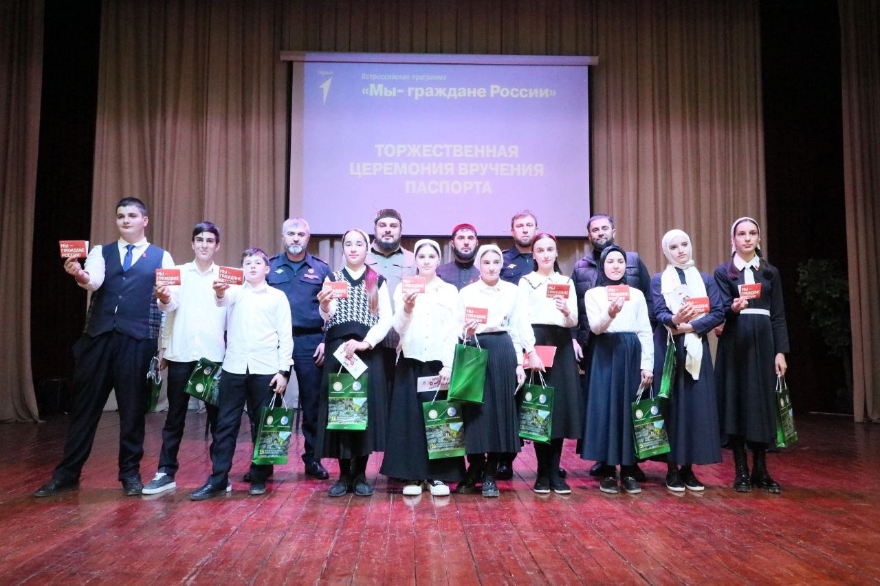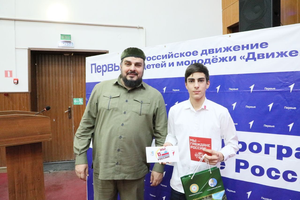 12.12.2023Первый заместитель главы Итум-Калинского района вручил активистам Движения Первых первые паспортаТоржественная церемония вручения паспортов Российской Федерации в рамках Всероссийского проекта «Мы - граждане России!» состоялась в День Конституции РФ в Доме культуры Итум-Калинского района. Свой главный документ в торжественной обстановке получили 11 ребят из Итум-Кали, Ведучи, Бугарой, Тазбичи, Зумсой и Тазбичи которые отличились в спорте, науке, творческой, учебной или волонтерской деятельности, а также других направлениях Движения Первых.Каждый участник дал особенную клятву Родине. Ребята пообещали хранить верность России, быть достойным гражданином, преданно служить Отечеству, защищать интересы, безопасность и независимость страны, а также сделать все от них зависящее для ее процветания. С важным событием в жизни ребят поздравили первый заместитель Главы Итум-Калинского района Рабуев А.С., а, заместитель начальника ОМВД России по Итум-Калинскому району Закриев Р и советник директора по воспитательной работе Висакава М.М.Гости церемонии произнесли добрые слова напутствия, пожелали ребятам быть добропорядочными, хранить и приумножать традиции своей малой родины и страны, с честью и достоинством нести звание гражданина Российской Федерации, так как с этого момента им даются большие права, но одновременно возлагаются и почетные обязанности. Вместе с паспортом юным участникам Движения Первых были вручены обложка и значок «Первые», а также памятные подарки от гостей.