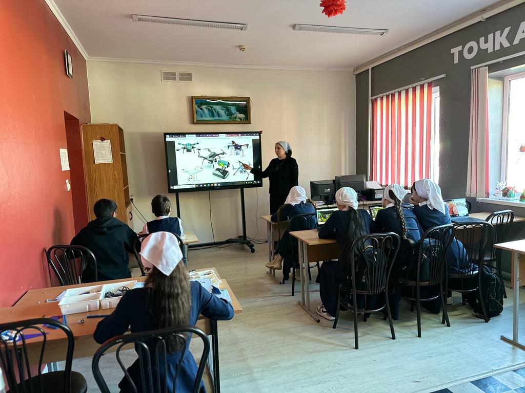 18.01.2024Сегодня в МБОУ «СОШ с. Итум-Кали им. Исаева Х.А.» на базе цифрового и гуманитарного профилей «Точка роста» было проведено занятие на тему «Беспилотник в геоинформатике. Устройство и применение дрона». Учитель технологии Исламова А.П. познакомила ребят с историей возникновения первых квадрокотперов.Обучающиеся узнали в каких сферах используются беспилотный летательный аппарат, где можно получить профессию оператора дронов, который отвечает за наземное управление БПЛА.Ребята заинтересовались данной темой и расширили кругозор в инновационных технологиях.