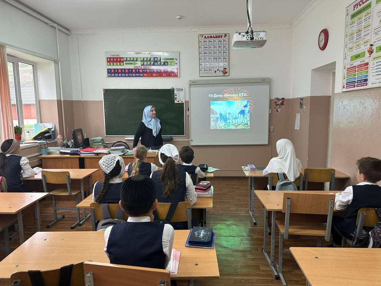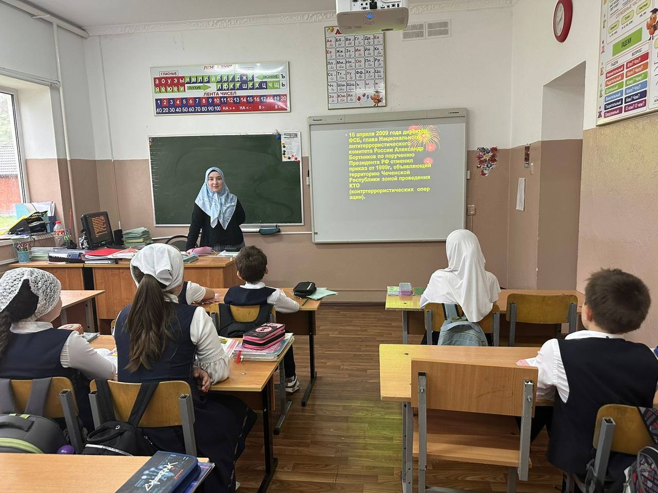 В МБОУ "СОШ с.Итум-Кали им.Исаева Х.А." прошли мероприятия посвященные Дню Мира. Классные часы были направлены на информирование подрастающего поколения о важности этой даты. Ученикам напомнили, что то, к чему так стремились люди, познавшие на себе все ужасы войны, было достигнуто высокой ценой – жизни Первого Президента ЧР Ахмата-Хаджи Кадырова, а также тысяч сотрудников правоохранительных органов, представителей местной и региональной власти, духовенства и так далее.