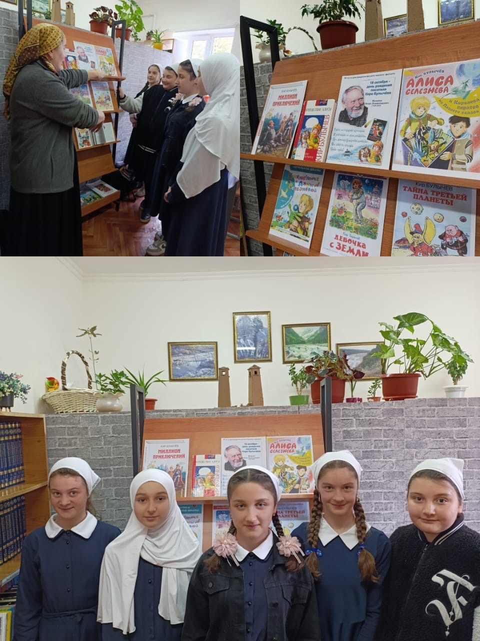 24.10.2024Библиотечный час посвященный 90-летию Кира Булычева. Кир Булычёв является одним из самых популярных советских фантастов. Его самое известное произведение — цикл детских книг о девочке из будущего Алисе Селезнёвой, оказавший большое влияние на советскую популярную культуру. Написал множество фантастических произведений для взрослых, научных трудов и стихов. #годсемьи #годобществознания #годистории #неделябиблиотеки