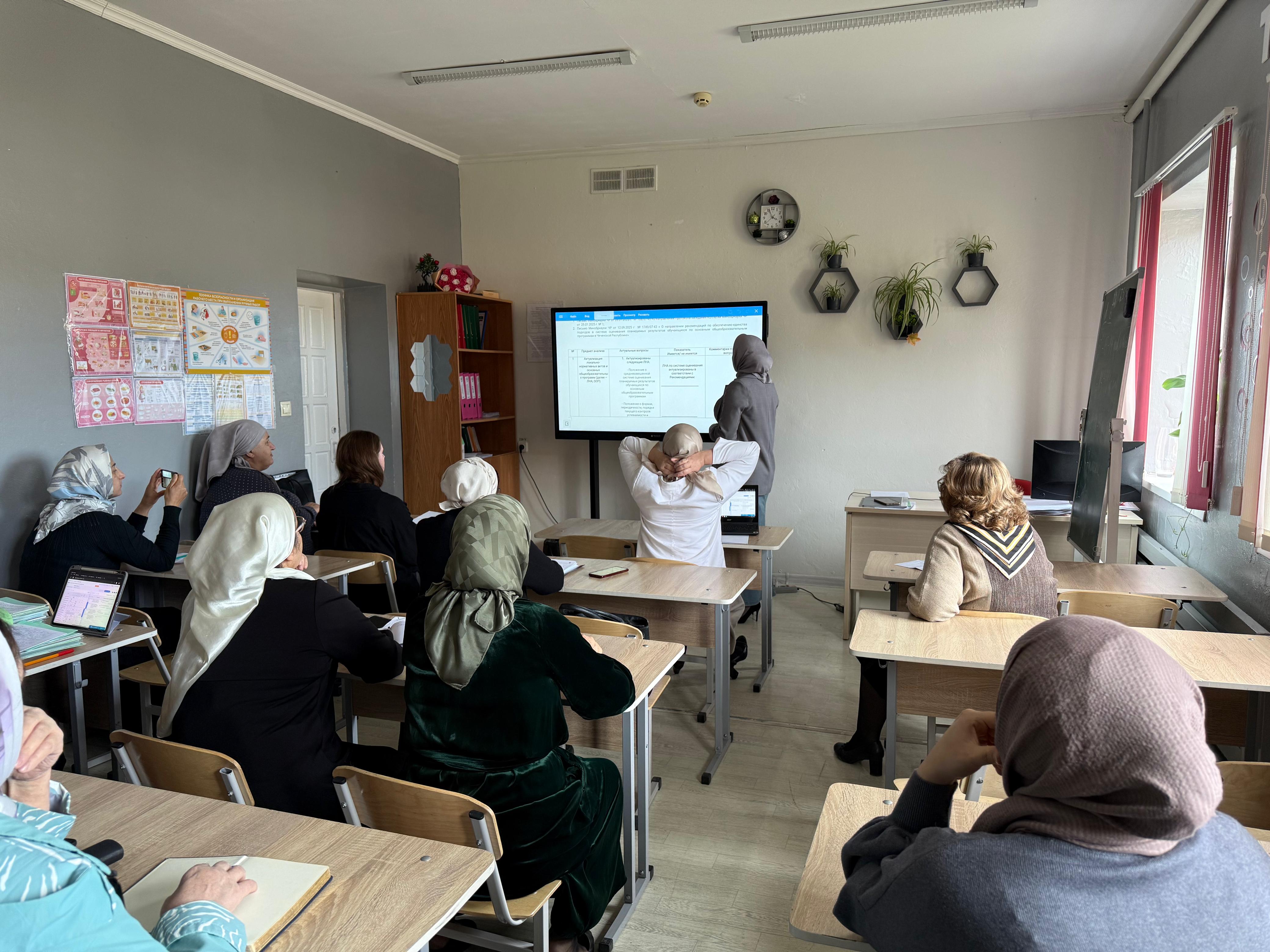 Организаторами выступили заместитель директора по УВР Горкавенко Т.А. и заведующая методическим кабинетом РОО Зубайраева П.М.-А. Они представили педагогам единые проекты положений, разработанные ГБУ ДПО ИРО ЧР, которые лягут в основу общей оценочной политики школы.
