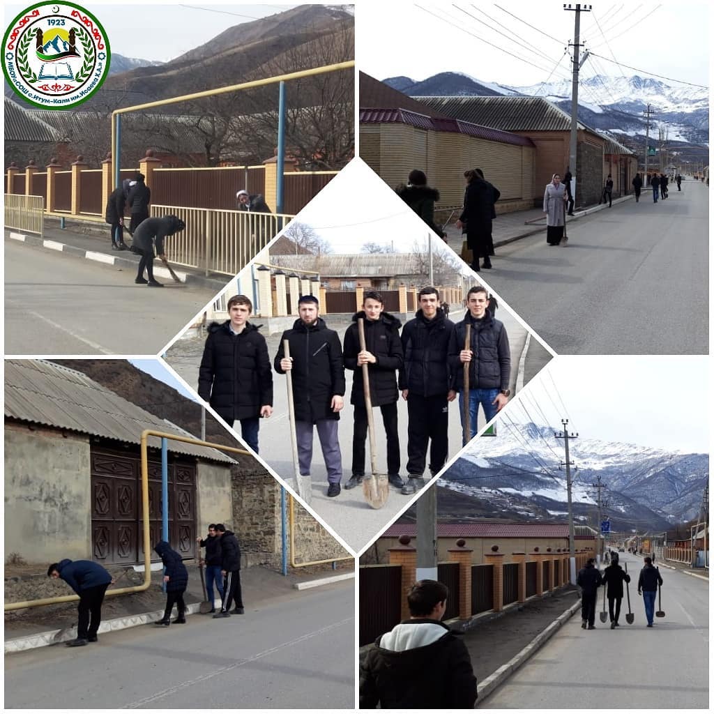 5 марта работники и учащиеся МБОУ "СОШ с. Итум-Кали им. Исаева Х. А." провели субботник по очистке обочины дорог улицы "М. Узуева" и прилегающей к школе территории.